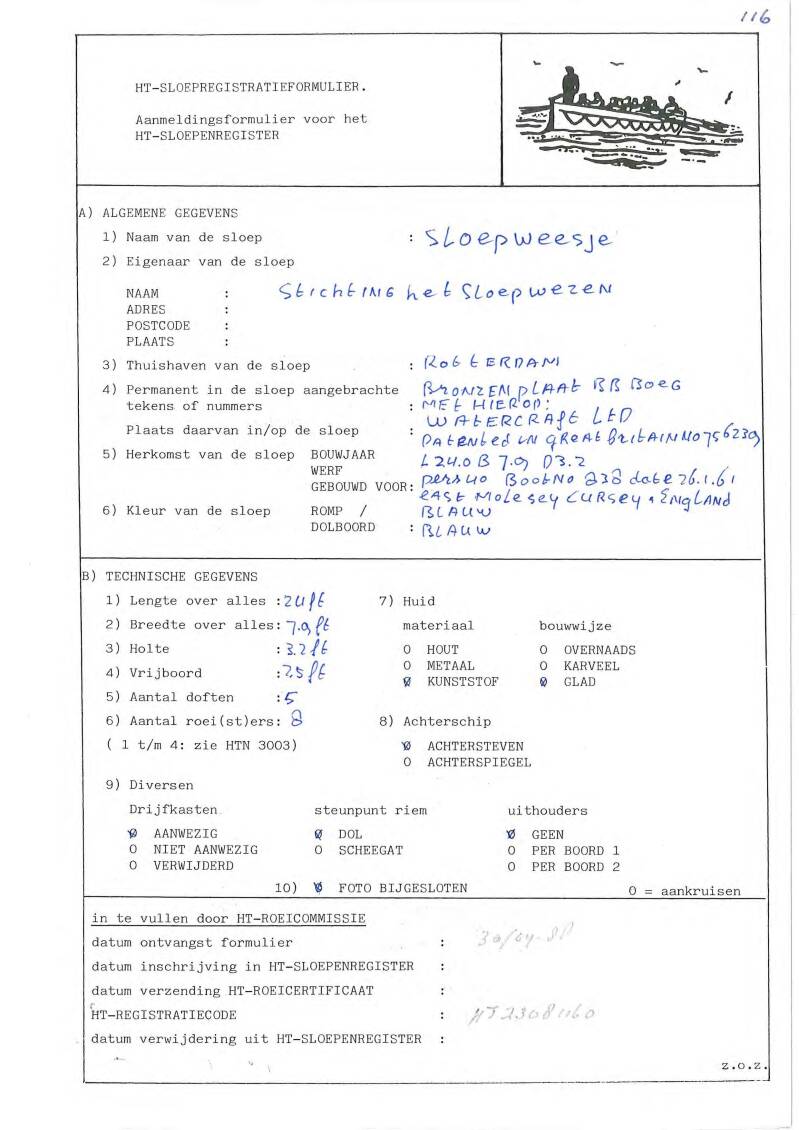 - Sleepgegevens zie actuele FSN sloepenregister