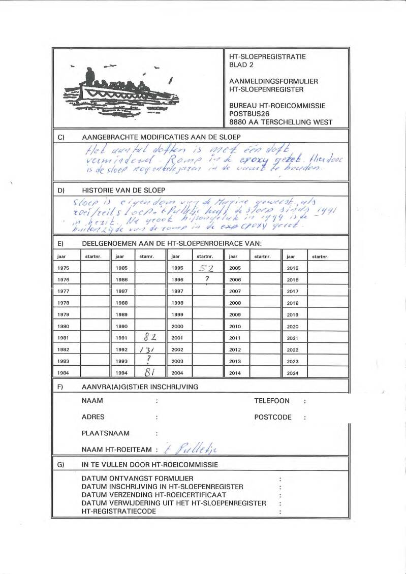 - Sleepgegevens zie actuele FSN sloepenregister