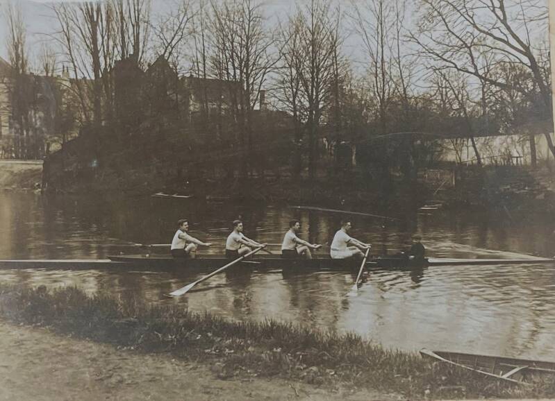 Ellen kreeg deze foto van iemand in Hattem toen ze met haar team op het terras zat. De gever vertelde dat het een hele oude foto was. Een van de eersten waarop roeien als sport was vastgelegd…. Hij hoopte dat het wat voor het clubhuis was en gaf aan dat het zeker een waardevolle foto was. Voordat Ellen kon vertellen dat ze in sloepen roeiden en ook niet in het gelukkige bezit van een clubhuis zijn was de gulle gever verdwenen. Nu is ze op zoek naar meer informatie over de foto / fotograaf. Iemand een idee?