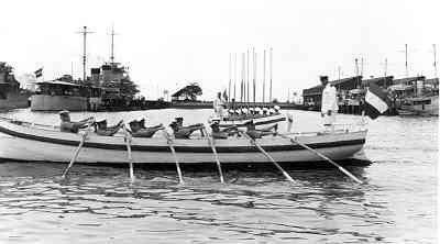 - Hiermee draait de sloep kort over stuurboord. Dit commando alleen uitvoeren als de sloep stil ligt of zeer weinig gang maakt!